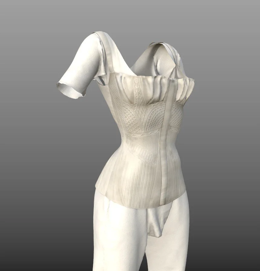 Work-in-progress; texturing the digital corset and combination set from ~1825, using substance painter